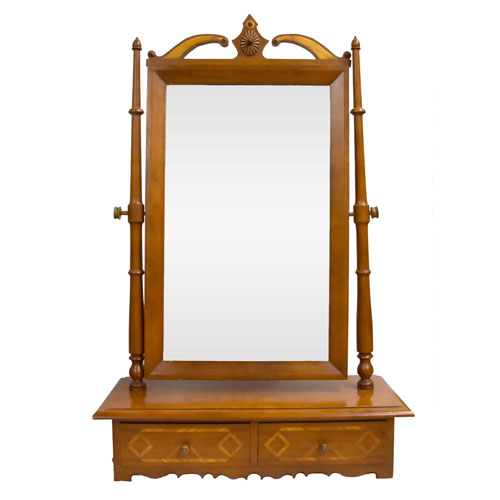 The dressing table stand was made by Peter Bartleman of Maple Hill. Born in Scotland in 1795, Bartleman came to Canada with his family in the early 1800s. During the 1850s, he moved from the Ottawa area to Maple Hill where he eventually had 200 acres of land. Peter Bartleman was known throughout the Maple Hill and Walkerton area; he made all of the furniture for his and his children’s homes, and even created a large clock tower attached to his barn that faced the well-travelled Durham Road. Bartleman died in 1881, but the clock tower, known as Haddington Tower, lasted until a windstorm blew it over in 1912.