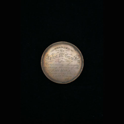 In October of 1876, off the coast of Michigan, Captain John Spence and the crew of the Nemesis rescued the shipwrecked crew of the propeller New York. The Nemesis had to circle the New York’s crew, who were in a lifeboat, twelve times during a large storm, and managed to save all but one of the crew members, while at the same time losing most of their own cargo. For their efforts, the crew were awarded medals, and Captain Spence received a silver tea set from the village of Southampton.
