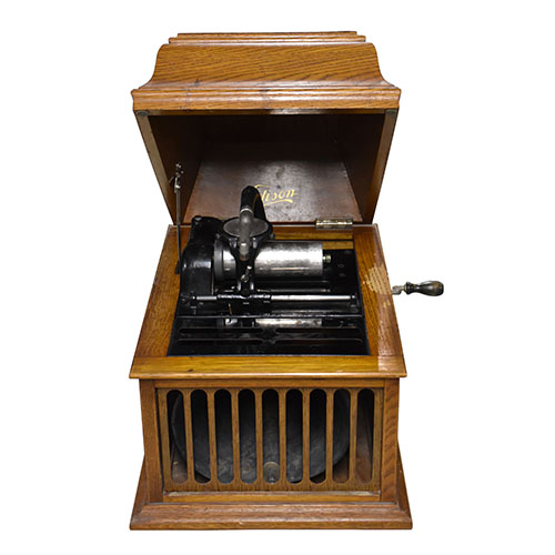 The home music industry began in the late 1870s with the creation of tabletop music players known as organettes along with the earliest rendition of Edison’s phonograph. Within the collection are several examples of organettes and early music technology such as music boxes and the Edison cylinder phonograph.