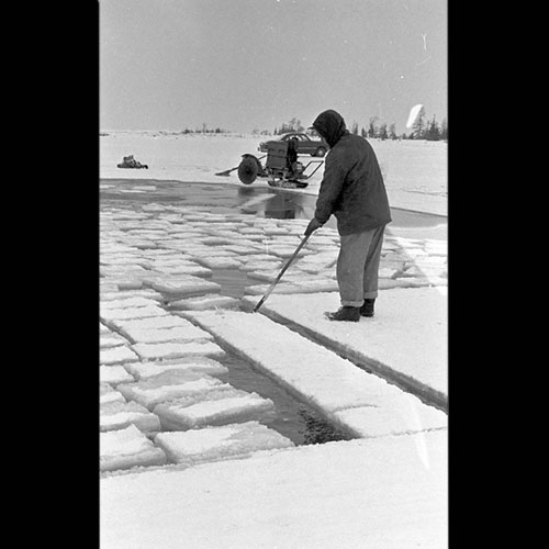 Brown, Larry. Ice Harvesting [Photograph]. 1950-1959. A994.002.001-04. Bruce County Museum & Cultural Centre