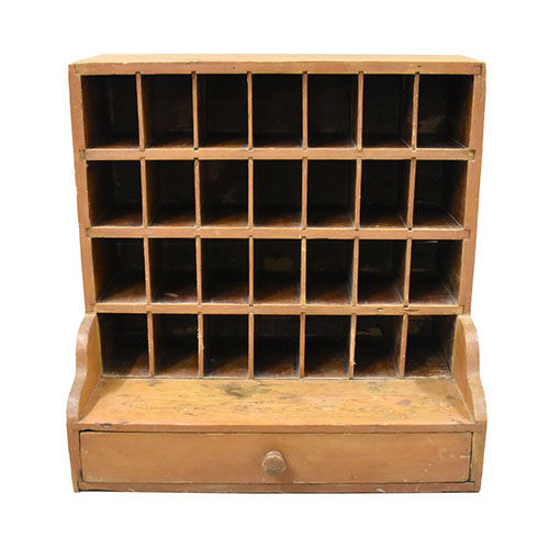 Why the post office was called Dumblane when the community is Dunblane, isn’t quite clear, and is thought to have been a misspelling, though some maps and charts show the name Dumblane. In 1890, stamps were issued with both Dumblane and Dunblane and were used interchangeably, which furthered the use of the ‘m’ rather than the ‘n’. The mail organizer seen here was used by members of the Fraser family during their time as post masters.