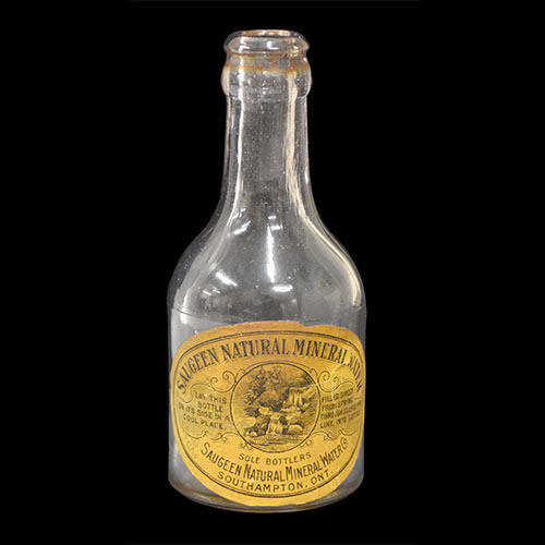Located in Southampton the Saugeen Mineral Water Company sold mineral water from 1893 until around the 1920s. The water came from an artesian well (an underground water deposit with running water) discovered by the Bruce Salt Company while looking for salt deposits in 1871.