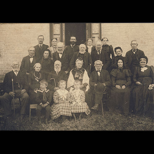 Charles and Jane were married August 16, 1850, in Perth Scotland. Shortly after they settled in Arran Township, Bruce County and can be found there living with their children on the 1861 Canadian Census. They farmed on Lot 1 Concession 11, Arran Township. Both Charles and Jane lived on the farm until their deaths, 1904 and 1907 respectively. This photo taken to celebrate their 50th wedding anniversary, does not have their daughter Mary or their son-in-law John in it, however two of Mary and John’s children, Jean and John are identified.