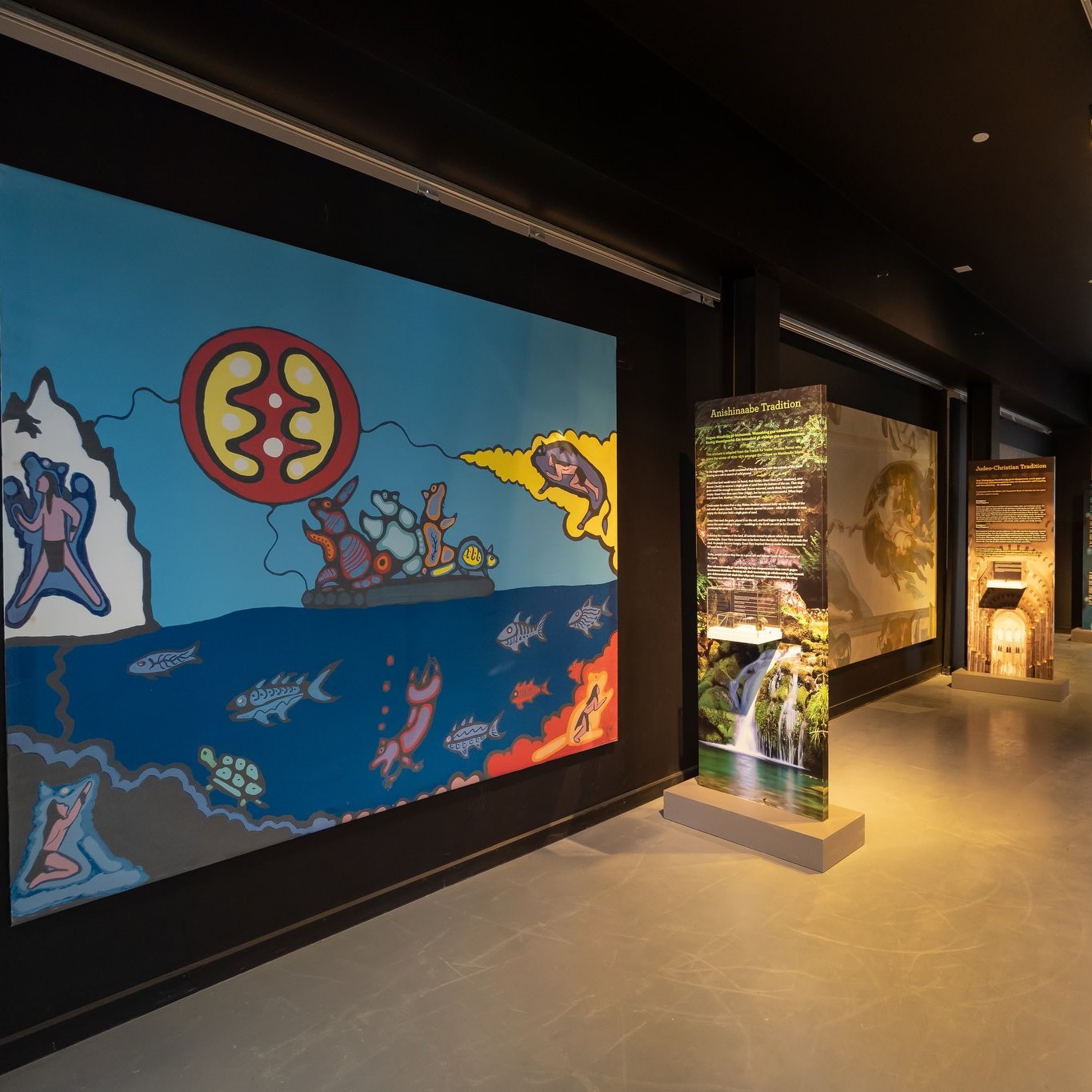 The Anishnaabwe Gallery showcases Anishnaabwe culture in a broader environmental and cultural context, specifically the impacts that changing climate and landscape have had on